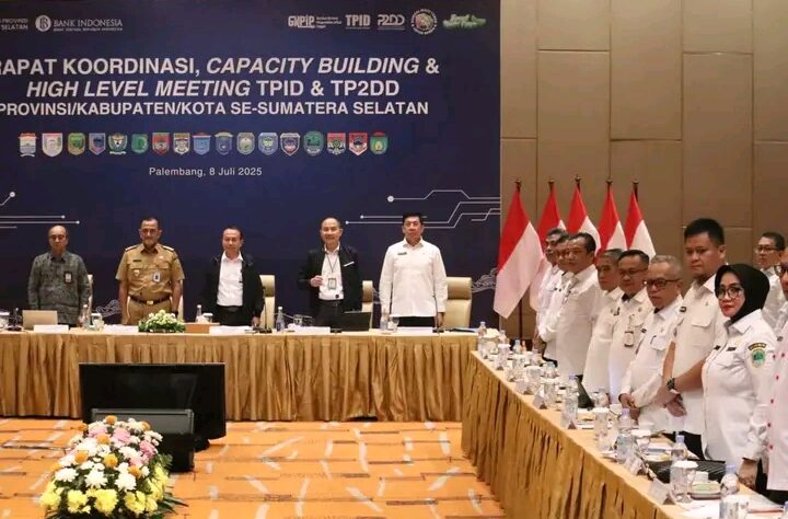 Palembang – Mewakili Bupati Banyuasin, Sekretaris Daerah Banyuasin Ir. Erwin Ibrahim, S.T., M.M., M.B.A., IPU., ASEAN Eng., menghadiri Rapat Koordinasi High Level Meeting bersama Tim Pengendali Inflasi Daerah (TPID) pada Selasa (08/07/2025).
