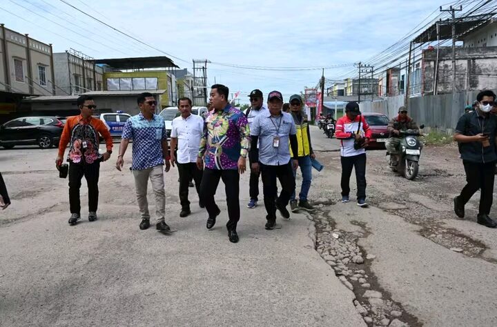 Rambutan-Bupati Banyuasin Dr. H. Askolani, SH., MH didampingi oleh Dinas PUPR Banyuasin dan Camat Rambutan meninjau Jalan Tegal Binangun, Jakabaring, Kecamatan Rambutan Kabupaten Banyuasin, Jum’at (3/10/2025).