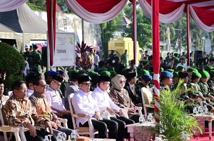 Palembang–Dalam rangka memperingati Hari Ulang Tahun Tentara Nasional Indonesia (TNI) Republik Indonesia Ke-80 tahun, 5 Oktober 2025, Wakil Bupati Banyuasin, Netta Indian, SP ikut memeriahkan dan menghadiri Upacara Peringatan dan Syukuran HUT TNI yang digelar di Benteng Kuto Besak, Palembang, Minggu (5/10/2025).