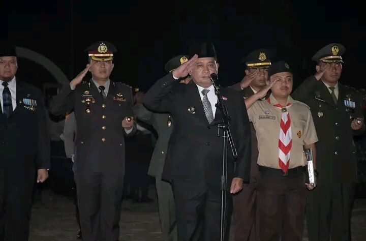“Kami yang hadir pada malam ini, Minggu tanggal 17 Agustus 2025 pukul 00.00 Wib, pada upacara untuk memperingati atas jasa-jasa para pejuang, kami percaya perjuangan saudara-saudara adalah perjuang kami semua ,” ujar Askolani.