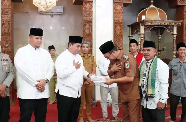 Pangkalan Balai – Memperingati Tahun Baru islam, Bupati Banyuasin Drs. H. Askolani,S.H.,M.H bersama Sekda Banyuasin Ir. Erwin Ibrahim,S.T.,M.M.,MBA,IPU,ASEAN,Eng menggelar Gebyar Sedekah Muharram dengan tema “ Hijrah Hati dan pikiran Menjadi Muslim Yang Lebih Baik” di Masjid Al-Amir, Senin (7/7).