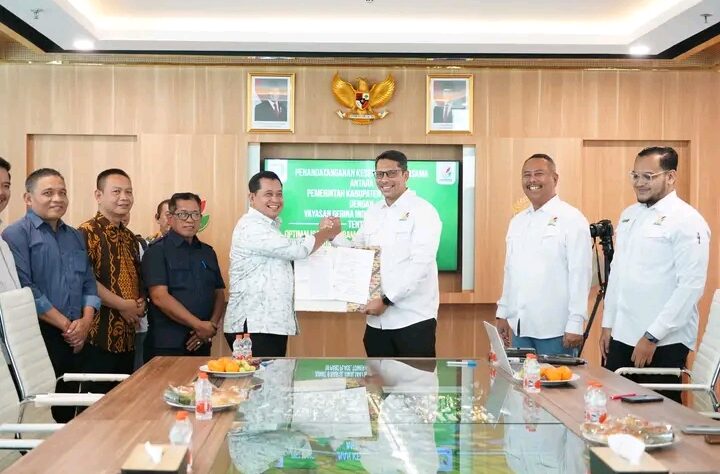 Jakarta-Dalam rangka terus mengoptimalkan swasembada pangan di Banyuasin, Bupati Banyuasin, Dr. H. Askolani, SH., MH menandatangani Kesepakatan Bersama Antara Pemerintah Kabupaten Banyuasin Dengan Yayasan Gerakan Indonesia Menanam (Gerina) Indonesia Menanam tentang Optimalisasi Program Swasembada Pangan Dan Penguatan Sumber Daya Manusia dilaksanakan di Kantor Gerina, Jakarta Selatan, Jum’at (29/08/2025)