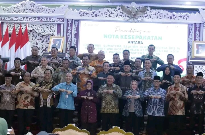 Palembang- Penandatanganan Nota Kesepakatan antara Gubernur Sumatera Selatan dengan Kepala BPS RI dan Bupati/Walikota dengan Kepala BPS Kabupaten/Kota Se-Provinsi Sumatera Selatan tentang Penyediaan, Pemanfaatan dan Pengembangan Data dan Informasi Statistik Dalam Rangka Pembangunan Daerah Provinsi Sumatera Selatan diselenggarakan di Griya Agung, Jumat (12/09/2025).