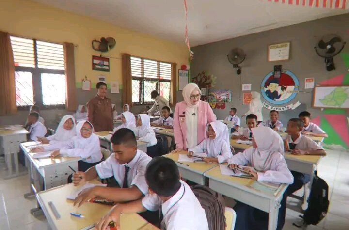 Sembawa-Dalam rangka monitoring sekolah guna memantau, mengawasi, dan mengidentifikasi permasalahan yang ada, Wakil Bupati Banyuasin, Netta Indian, SP didampingi oleh Kepala Dinas Pendidikan dan Kebudayaan Banyuasin, Aminuddin, S.Pd., S.IP., M.Si mengunjungi langsung Sekolah Menengah Pertama Negeri Nomor 1 dan Sekolah Menengah Pertama Negeri Nomor 2 Sembawa pada Selasa (19/08/2025).